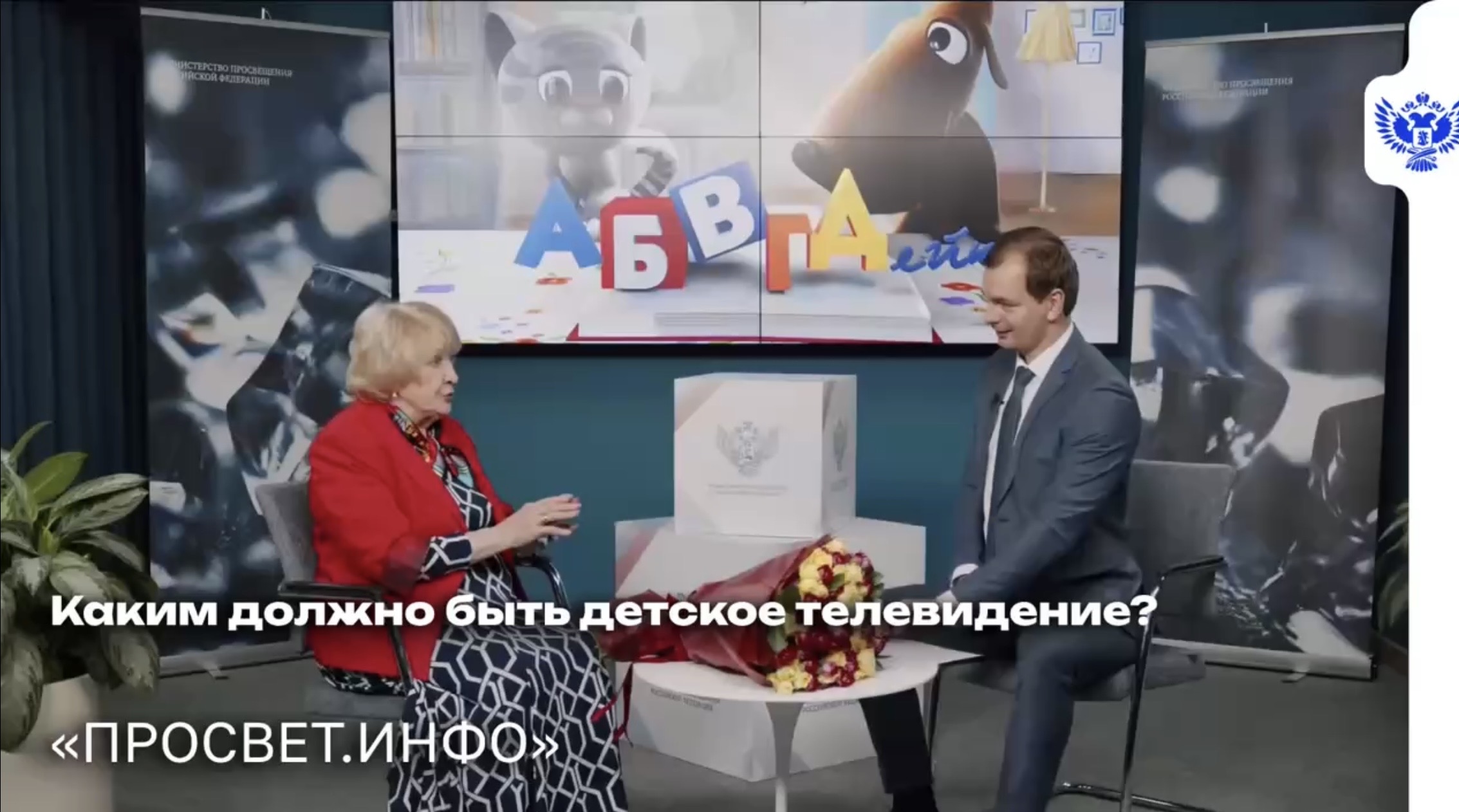 В пресс-центре Министерства просвещения Российской Федерации состоялась запись спецвыпуска программы «ПРОСВЕТ.ИНФО», приуроченная к 50-летнему юбилею легендарной детской передачи «АБВГДейка». Гостьей программы стала Татьяна Кирилловна Черняева — научный работник Лаборатории развития дошкольного образования Института развития ребенка, художественный руководитель программы «АБВГДейка», тележурналист и отличник просвещения СССР.
