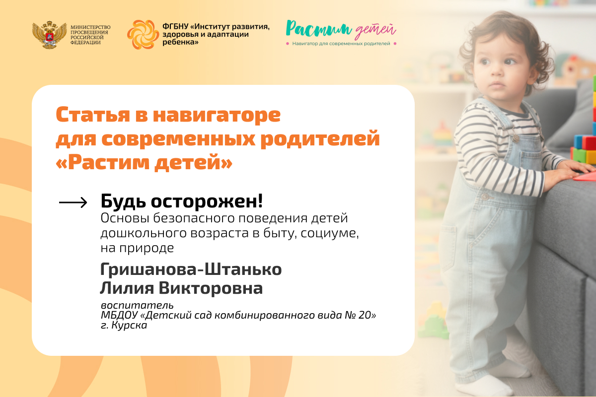 Как превратить правила безопасности в привычку, а не в источник тревоги? Об этом рассказывает Лилия Викторовна Гришанова-Штанько, воспитатель МБДОУ «Детский сад комбинированного вида № 20» г. Курска, в своей статье на портале информационно-просветительской поддержки родителей «Растим детей»: