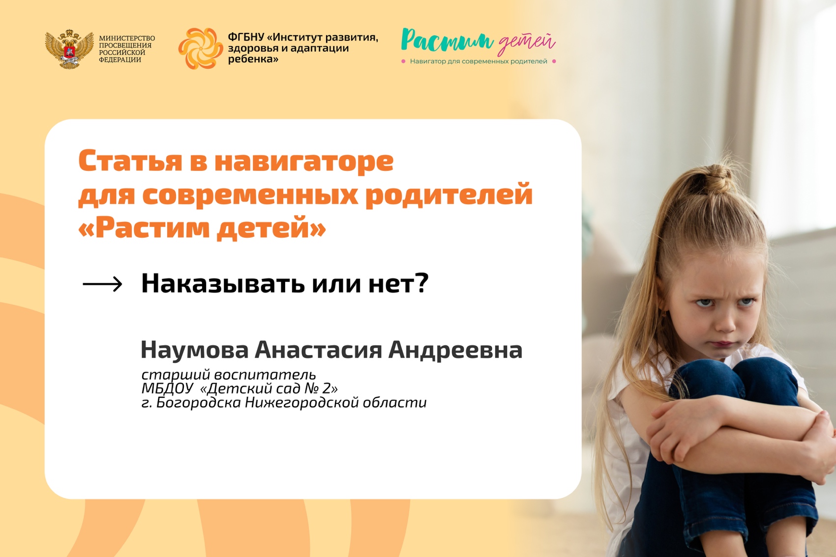 Статья подготовлена в рамках исполнения Институтом развития ребенка государственного задания по внедрению Программы просвещения родителей (законных представителей) детей дошкольного возраста, посещающих дошкольные образовательные организации по поручению Министерства просвещения Российской Федерации.