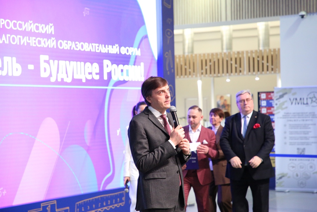 На торжественном открытии Форума выступил Министр просвещения Российской Федерации Сергей Кравцов. Он отметил, что название форума «Учитель – Будущее России» говорит само за себя: «Учитель – главная профессия на Земле, и в Год педагога и наставника мы видим, насколько много внимания уделяется системе педагогического образования и статусу учителя. Педагогическое образование занимает второе место по популярности у школьников, и это очень важно».