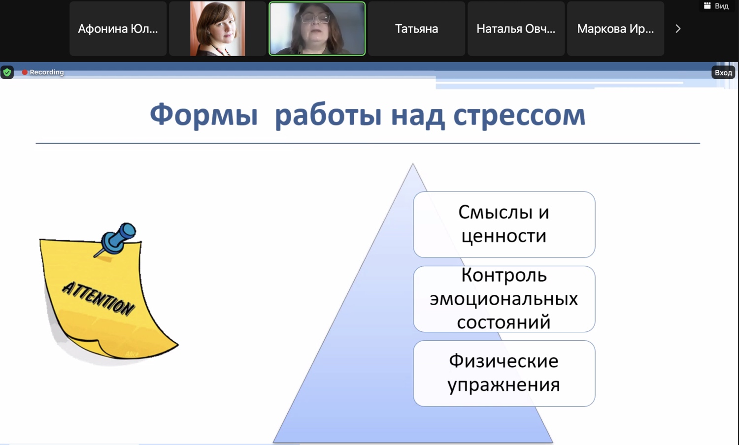 Во второй части лекции Елена Николаевна провела практикум по совладающему поведению, где участники лекции получили практические упражнения, направленные на развитие навыков справления со стрессом и трудностями, с целью улучшения психологической устойчивости.