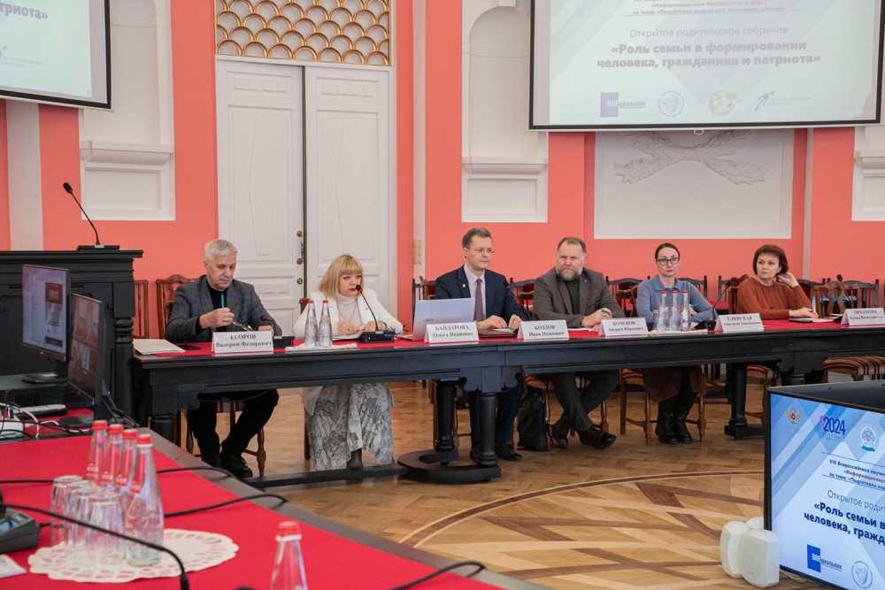 На площадке Московского педагогического государственного университета (МПГУ) 29 февраля состоялось Открытое родительское собрание «Роль семьи в формировании человека, гражданина и патриота», в рамках VIII Всероссийской научно-практической конференции «Информационная безопасность и дети: подготовка кадров для экономики данных». Мероприятие прошло в смешанном формате, с онлайн-трансляцией, которую посмотрели более 3 тысяч человек.
