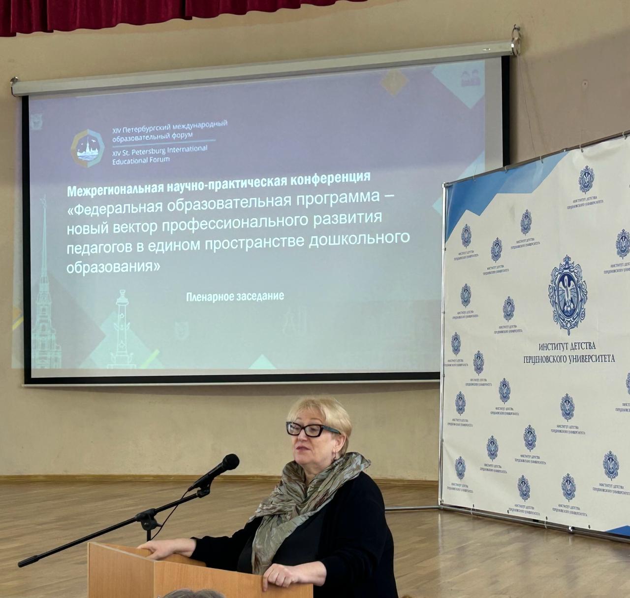 27 марта состоялся XIV Петербургский международный образовательный форум, в рамках которого прошла межрегиональная научно-практическая конференция «Федеральная образовательная программа – новый вектор профессионального развития педагогов в едином пространстве дошкольного образования».