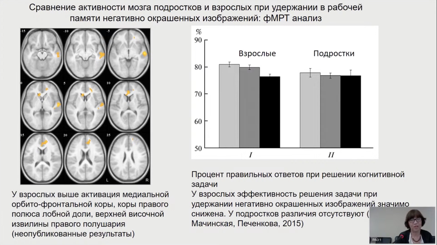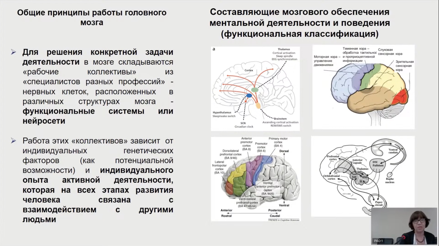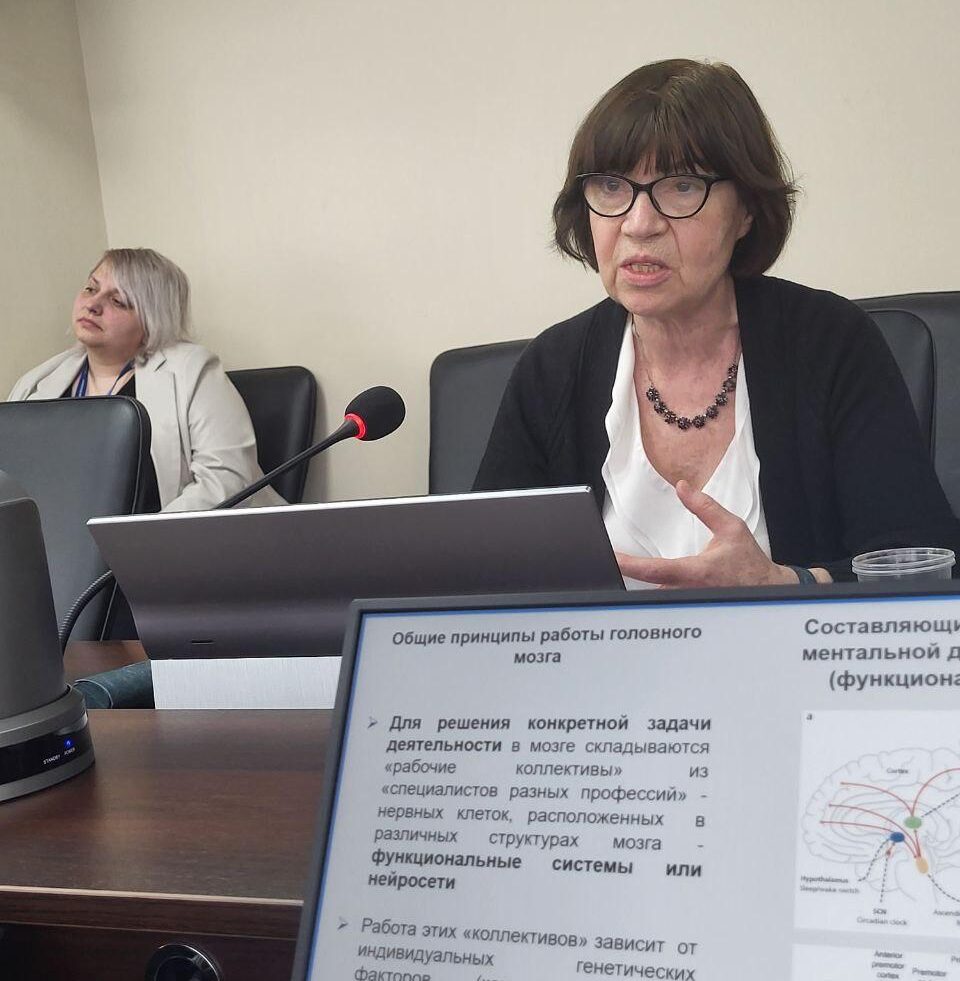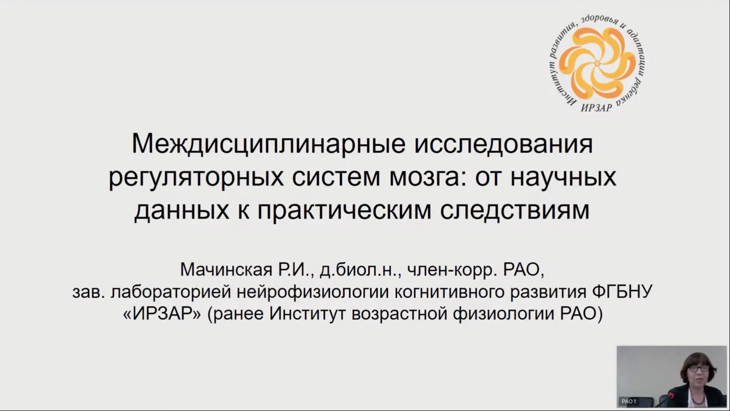 В работе круглого стола приняла участие Мачинская Регина Ильинична, заведующий лабораторией нейрофизиологии когнитивного развития ФГБНУ «ИРЗАР», доктор биологических наук, член-корреспондент РАО. Она выступила с докладом на тему «Междисциплинарные исследования регуляторных систем мозга: от научных данных к практическим следствиям».