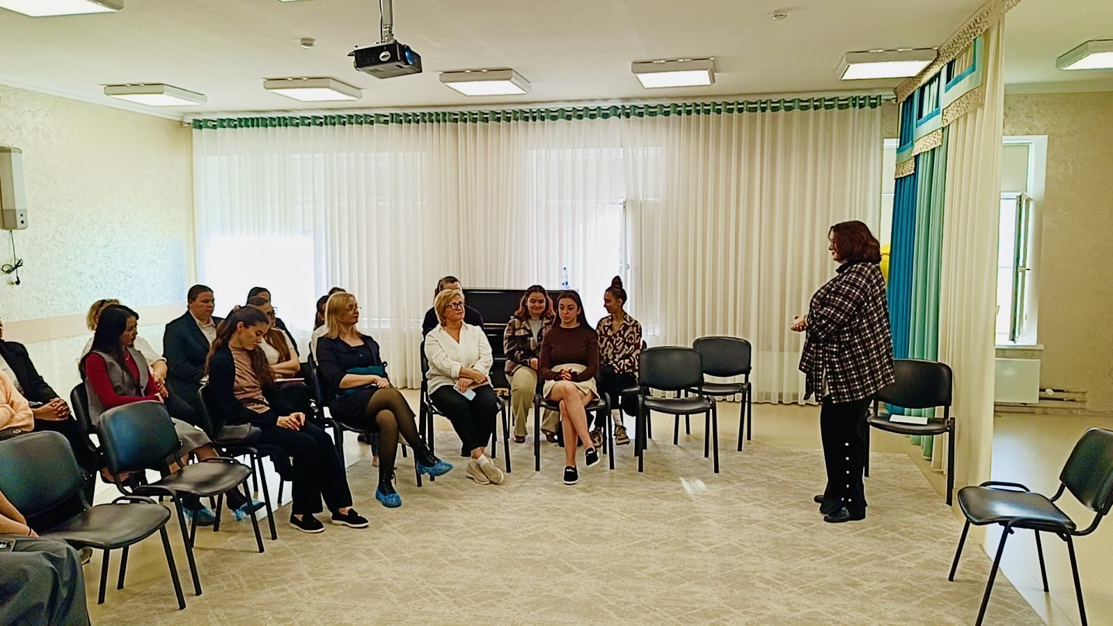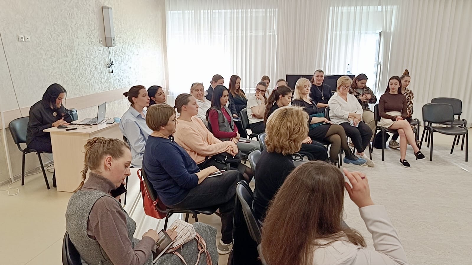 Тема встречи — «Просвещение для воспитательной функции семьи» — вызвала живой интерес у участников. В диалоге с молодыми педагогами дошкольных учреждений и студентами-практикантами филиала Ставропольского государственного педагогического института Елена Николаевна обсудила ключевые аспекты взаимодействия педагогов с семьями воспитанников, типичные трудности в воспитательной работе и пути их преодоления, а также роль профессионального просвещения в укреплении воспитательного потенциала семьи.