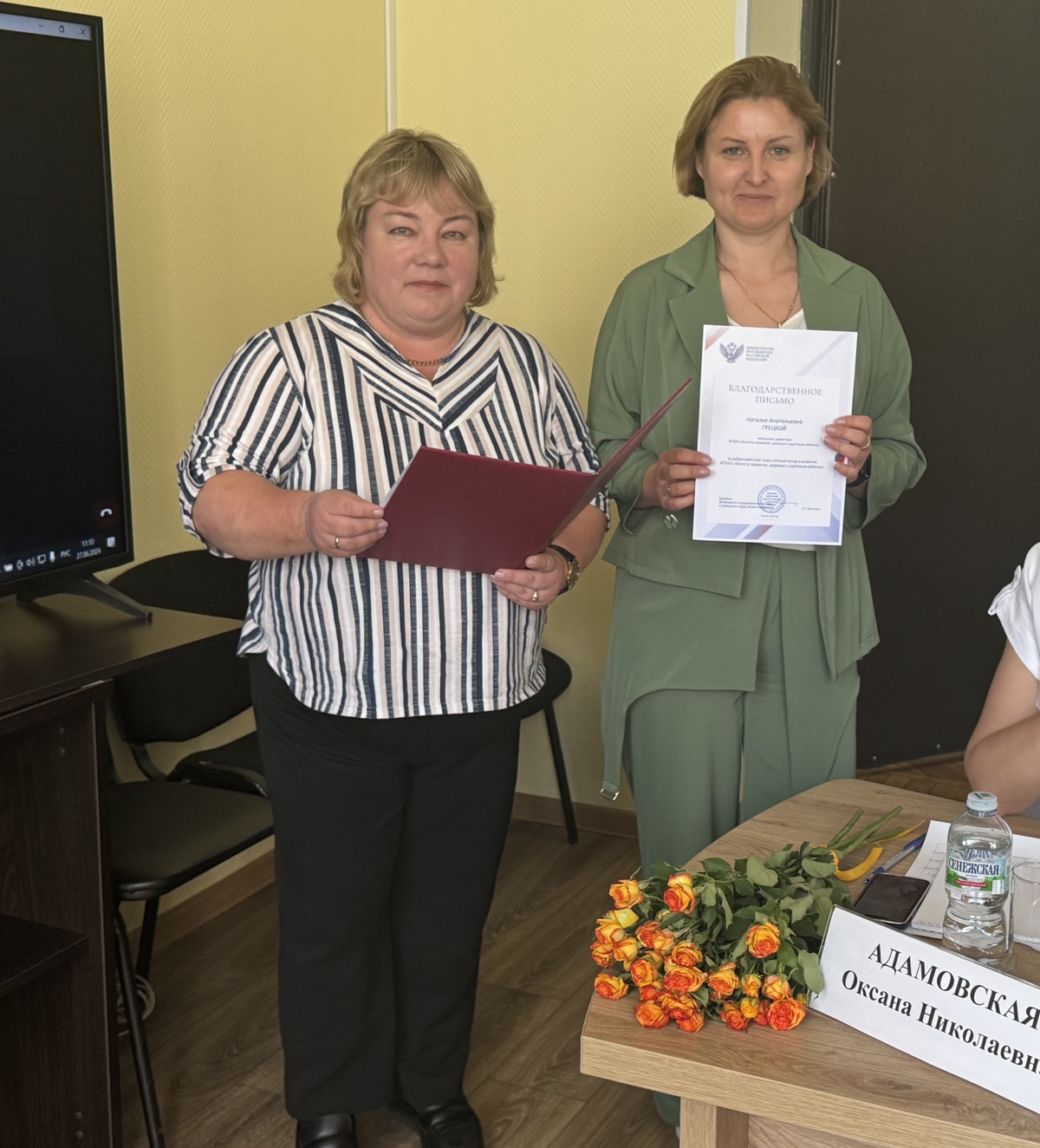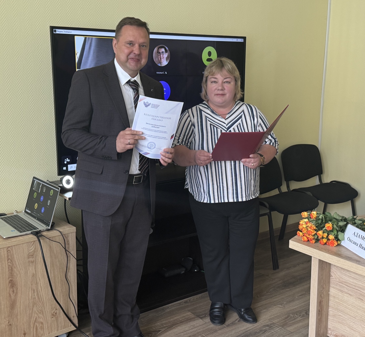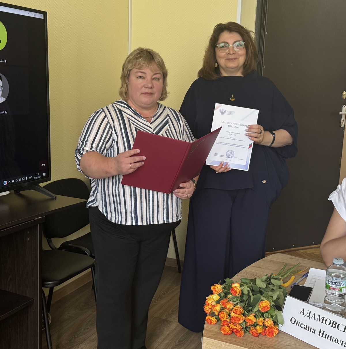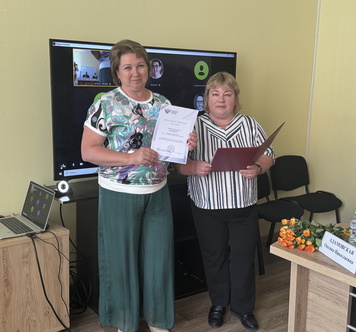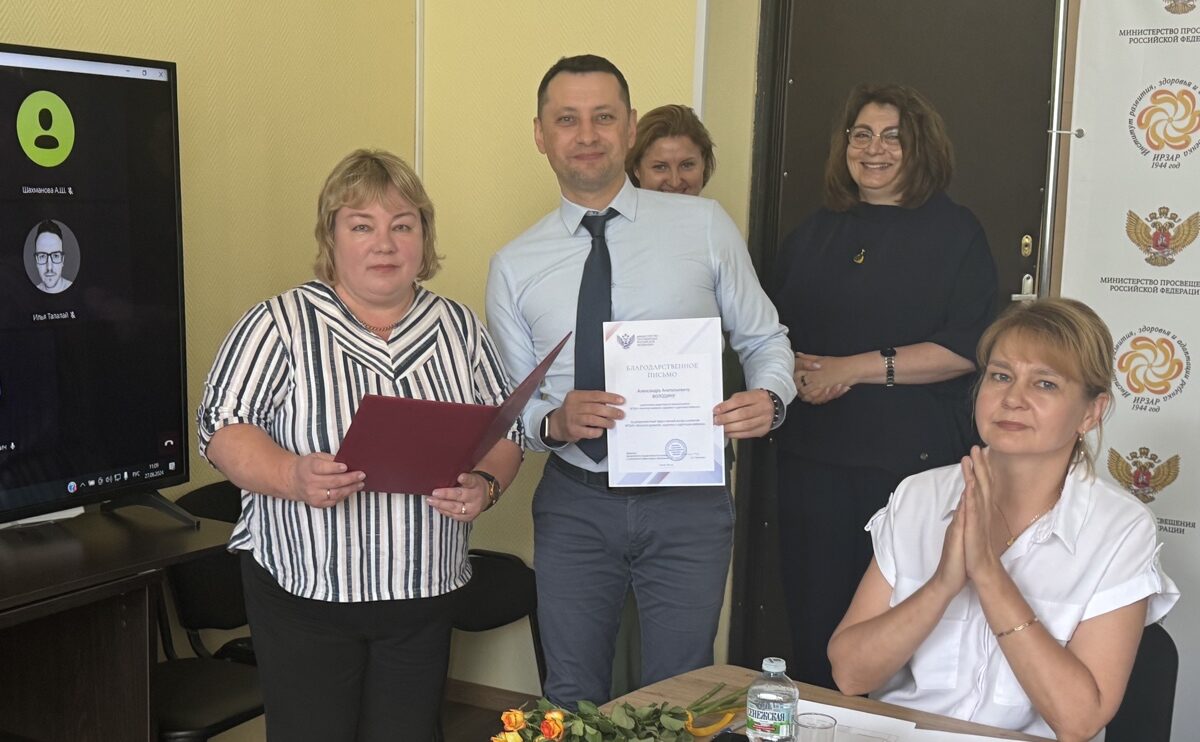 На заседании Ученого совета 27 июня 2024 г. Надежда Владимировна Беляева, начальник отдела дошкольного образования Департамента государственной политики и управления в сфере общего образования Минпросвещения России вручила благодарственные письма от Министерства просвещения Российской Федерации сотрудникам учреждения за их добросовестный труд и личный вклад в развитие Института.