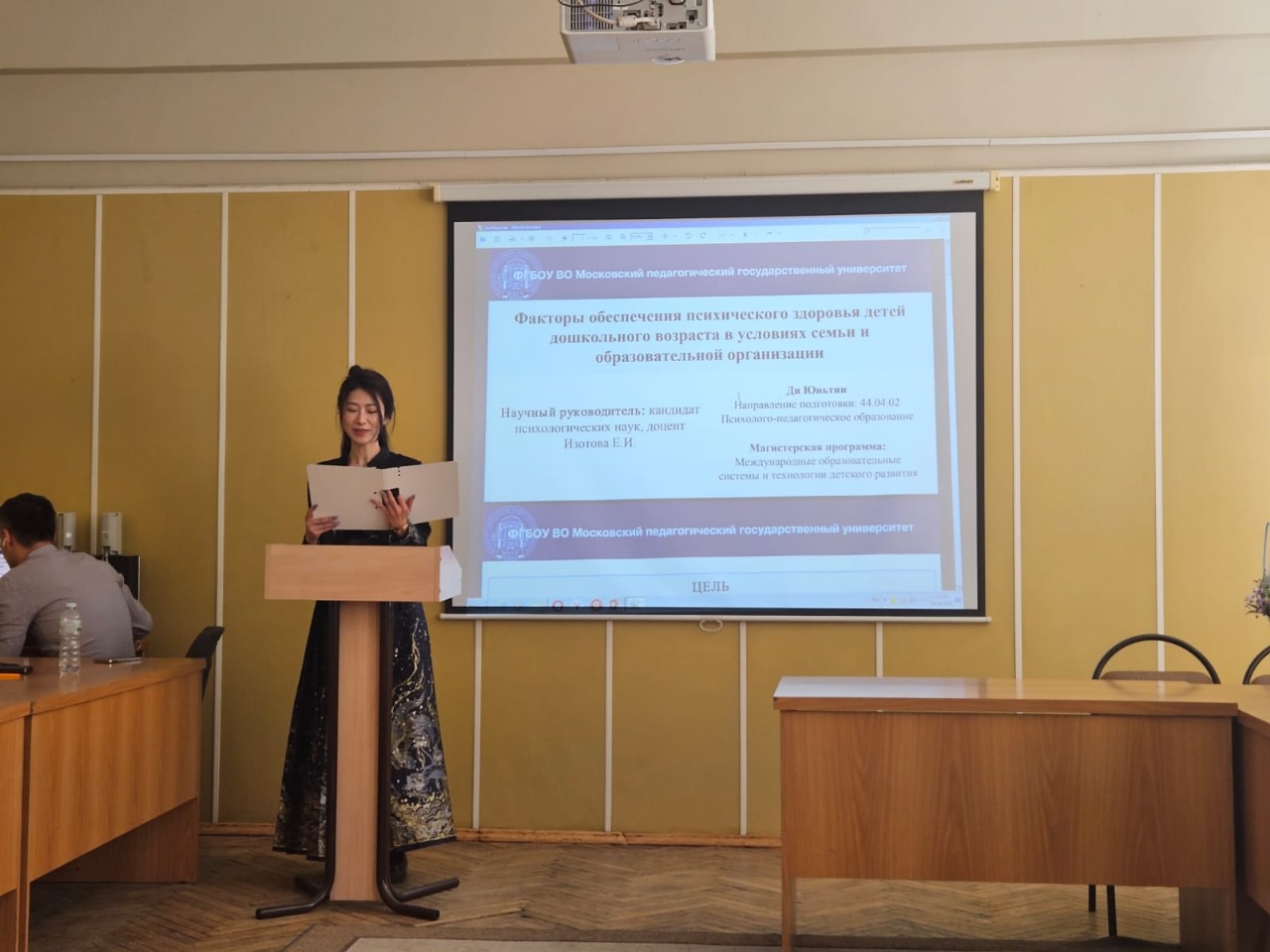 На защите были представлены актуальные темы исследования для современной практики дошкольного образования: «Факторы обеспечения психического здоровья детей дошкольного возраста в условиях семьи и образовательной организации», «Особенности воспитания в Китае мальчиков и девочек в дошкольном и младшем школьном возрастах», «Психолого-педагогические технологии профилактики эмоционального выгорания педагогов в условиях дошкольной образовательной организации», «Влияние национальной культуры на социализацию личности» и другие.