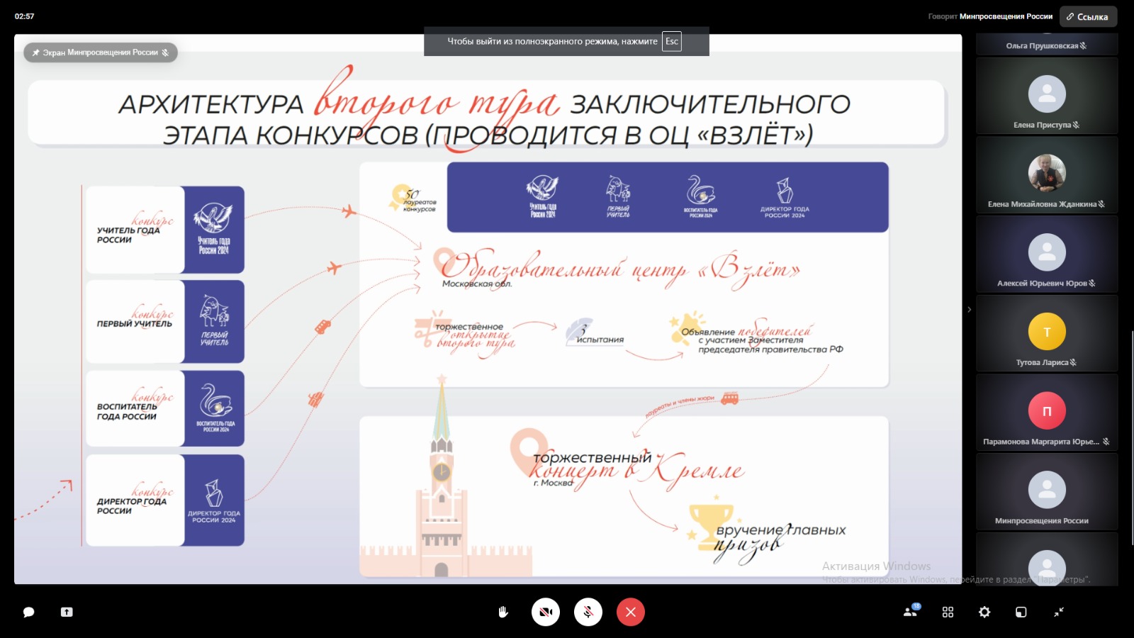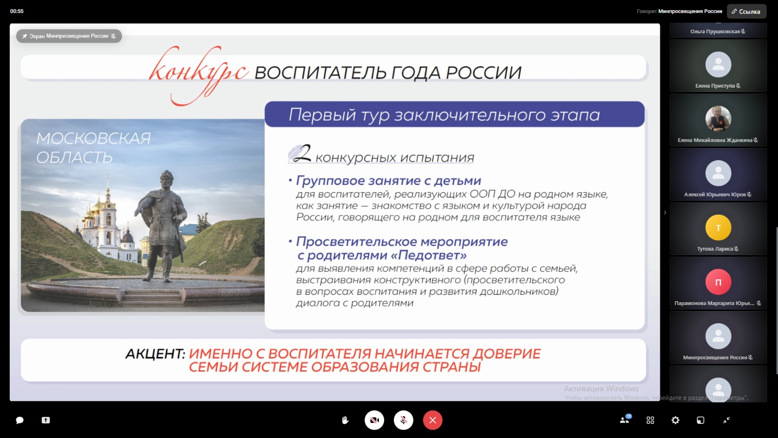 14 и 16 мая 2024 г. прошли заседания организационного комитета. Конкурс направлен на профессиональное и личностное развитие педагогов, работающих в образовательных организациях, реализующих образовательные программы дошкольного образования; выявление и поддержку наиболее талантливых педагогов, распространение их лучших практик на всей территории РФ; привлечение внимания органов государственной власти и органов местного самоуправления, широкой научной и педагогической общественности, средств массовой информации к важности решения проблем дошкольного образования.
