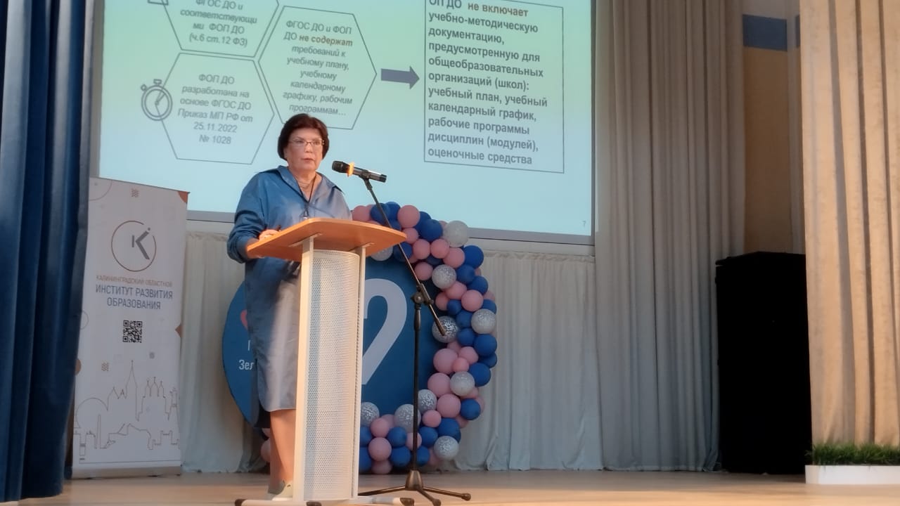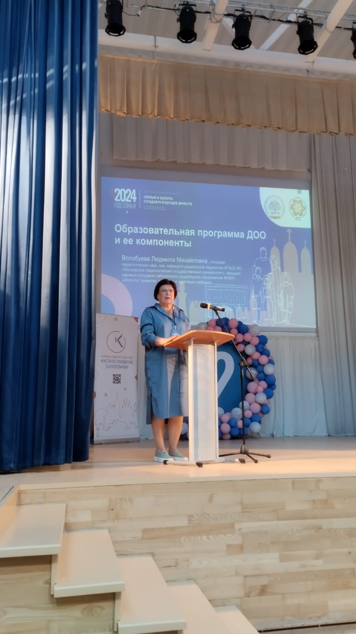 Волобуева Людмила Михайловна, ведущий научный сотрудник Лаборатории дошкольного образования, к.пед.н., доцент, в своем выступлении «Образовательная программа ДОО и ее компоненты» раскрыла особенности Федеральной образовательной программы дошкольного образования, проанализировала нормативно-правовую базу, определяющую процесс разработки образовательных программ дошкольными образовательными организациями, обозначила перечень необходимых компонентов программы.